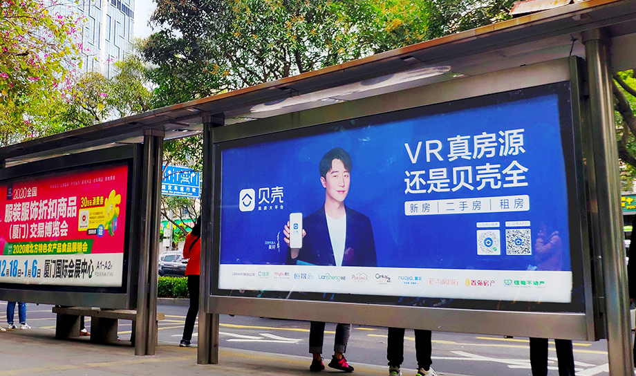 介紹:貝殼找房全市數(shù)百座公交候車(chē)亭,以日均數(shù)十萬(wàn)的曝光量覆蓋各階層人群,從新定義剛需人群,全面滿(mǎn)足受眾人群的居住需求。