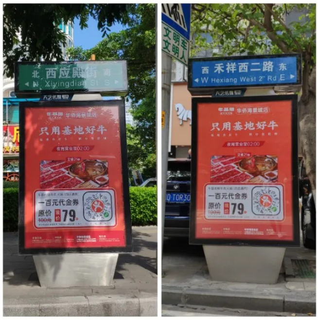 ?;嘏c天藝傳媒強(qiáng)強(qiáng)聯(lián)手,精準(zhǔn)宣傳將?;厝A僑海景城店附近的城市路名牌戶(hù)外媒體進(jìn)行定點(diǎn)宣傳。