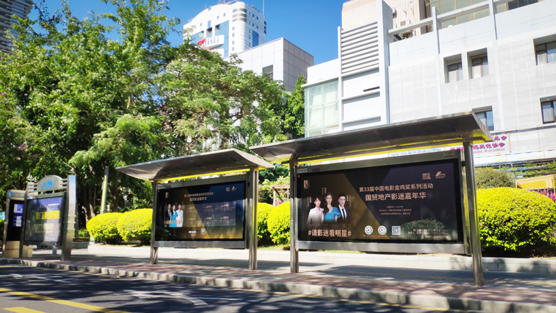 隨著本次金雞盛典系列活動(dòng)的到來,廈門處處充滿了金雞電影盛會(huì)舉辦的氣氛。作為連接廈門各個(gè)主干道的公交網(wǎng)絡(luò),遍布城市大街小巷的公交候車亭媒體,以#影迷嘉年華#、#請(qǐng)影迷見明星#等為主背景畫面,全城展示。