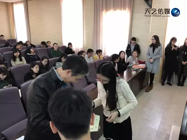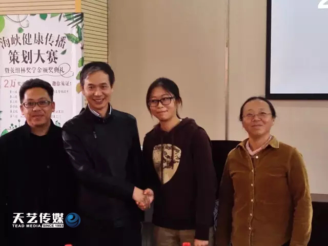 典禮由廈大新聞傳播學院團委書記戴瑩先生主持,作《廈門大學新聞傳播學院2016學年獎學金評審工作報告》并宣讀有關獎學金的獲獎名單,天藝傳媒董事長林少敏先生為獲獎學生頒獎。