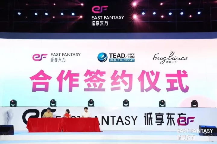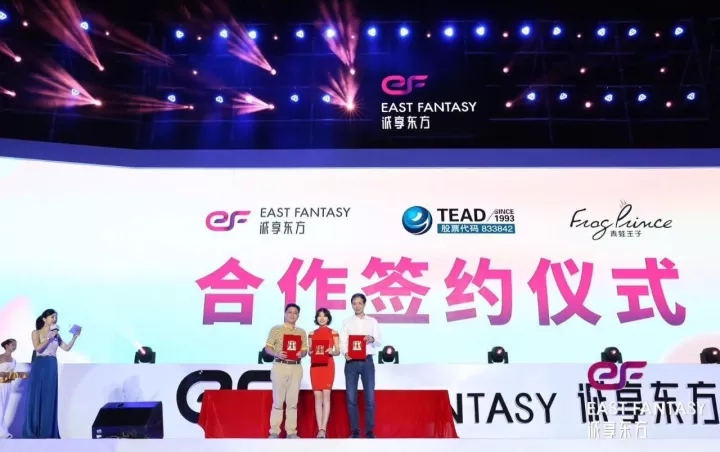 2017年10月21日,在誠享東方掛牌慶典晚會上,天藝傳媒攜手知名美妝移動電商——誠享東方,及國內(nèi)領(lǐng)先日化企業(yè)——青蛙王子在廈門音樂島正式舉行簽約儀式。三方將在未來共同推出以“阿巴兔”為品牌形象的兒童護理系列產(chǎn)品。